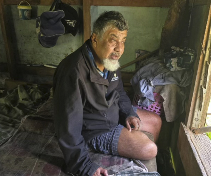 Mohammed Khan is an accident victim who is 60 years old. He is living in very poor conditions. One son is living next door and looking after him.